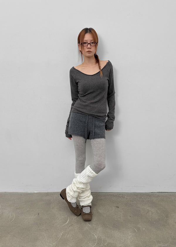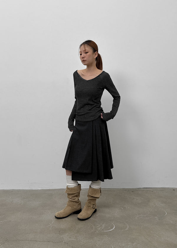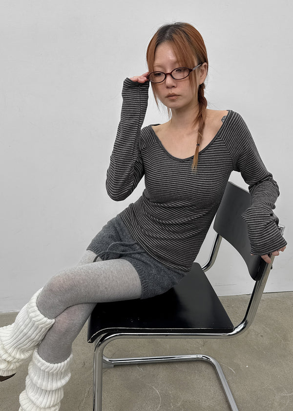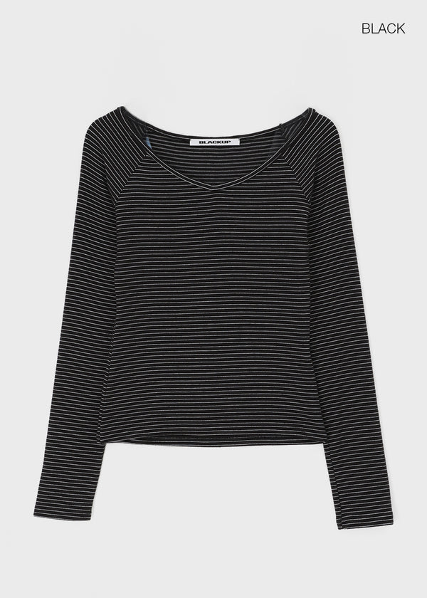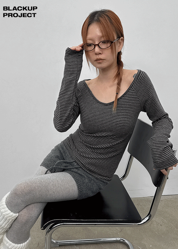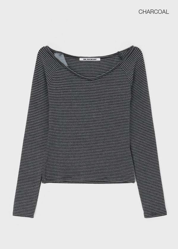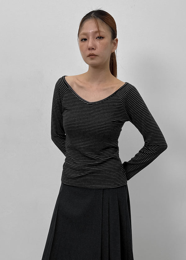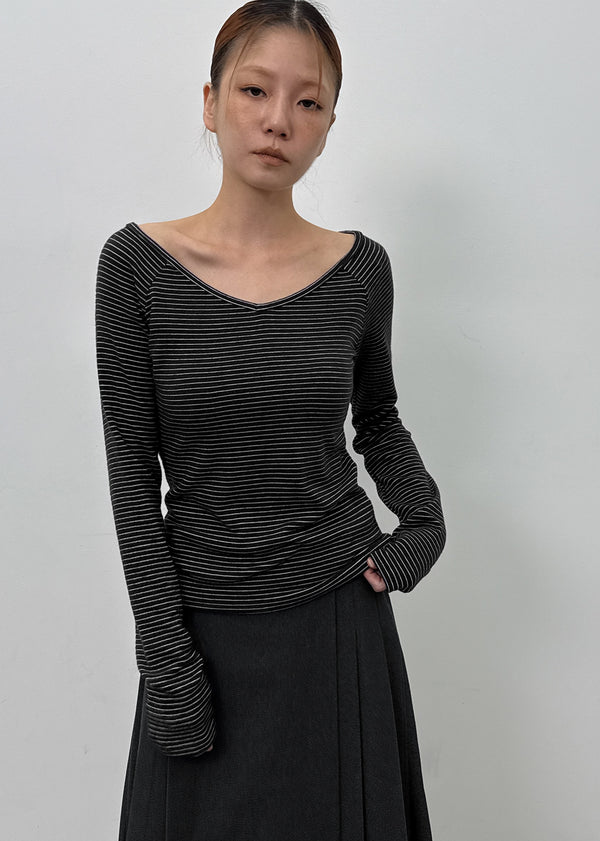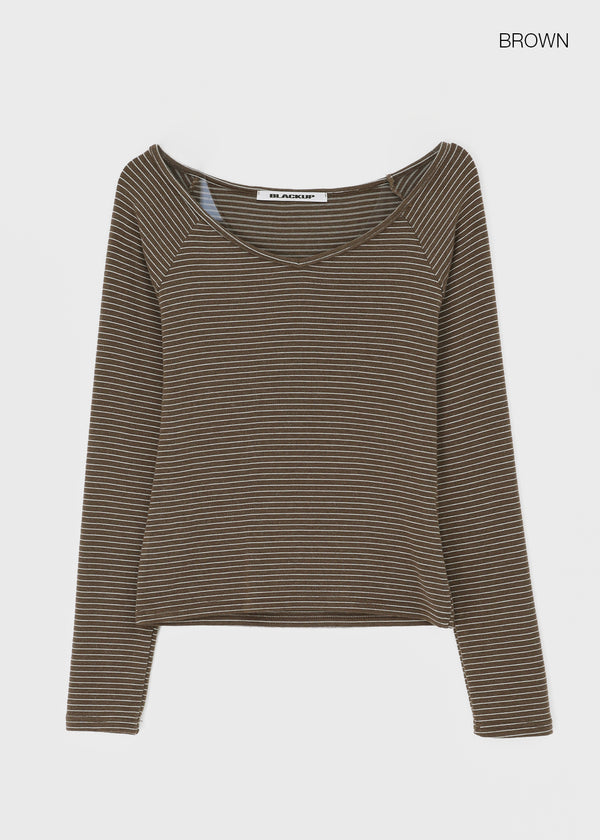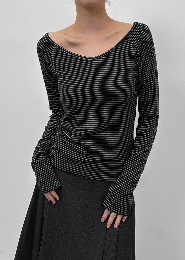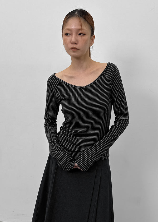 [MADE] Kuwill Stripe Deep V-neck Long Sleeve T-shirt