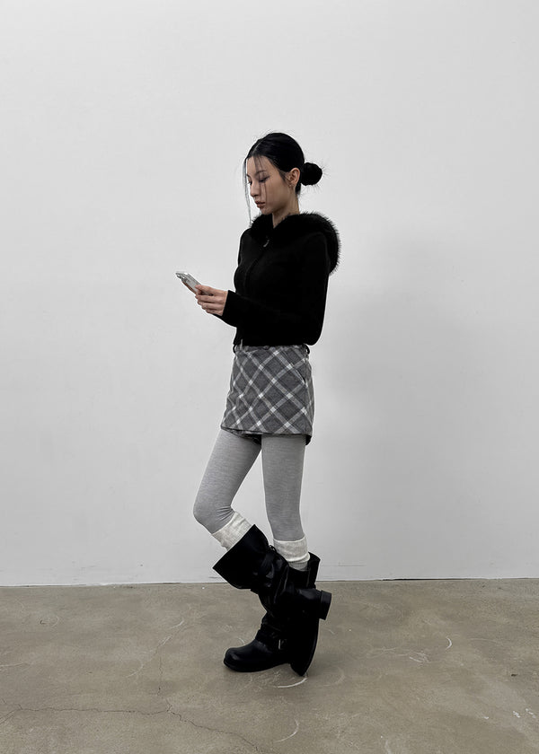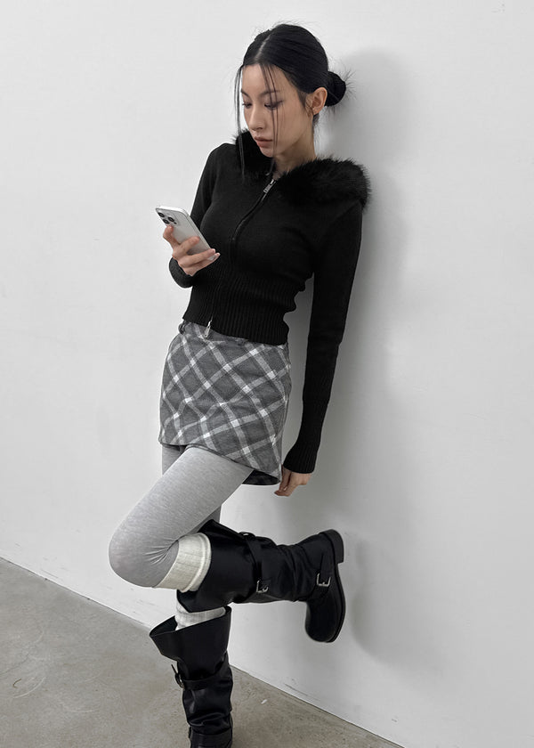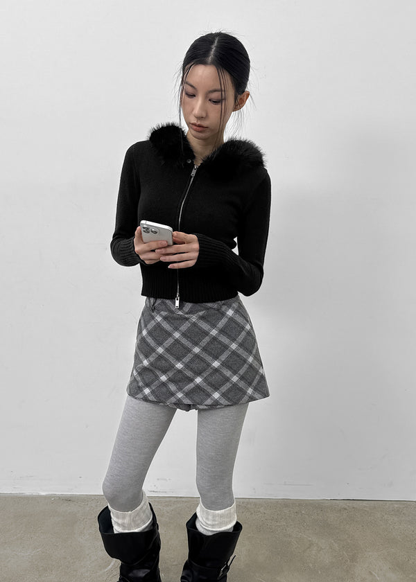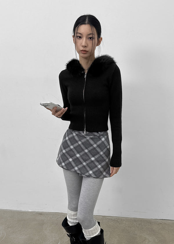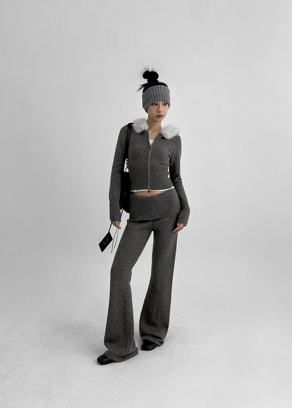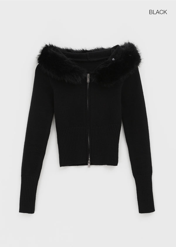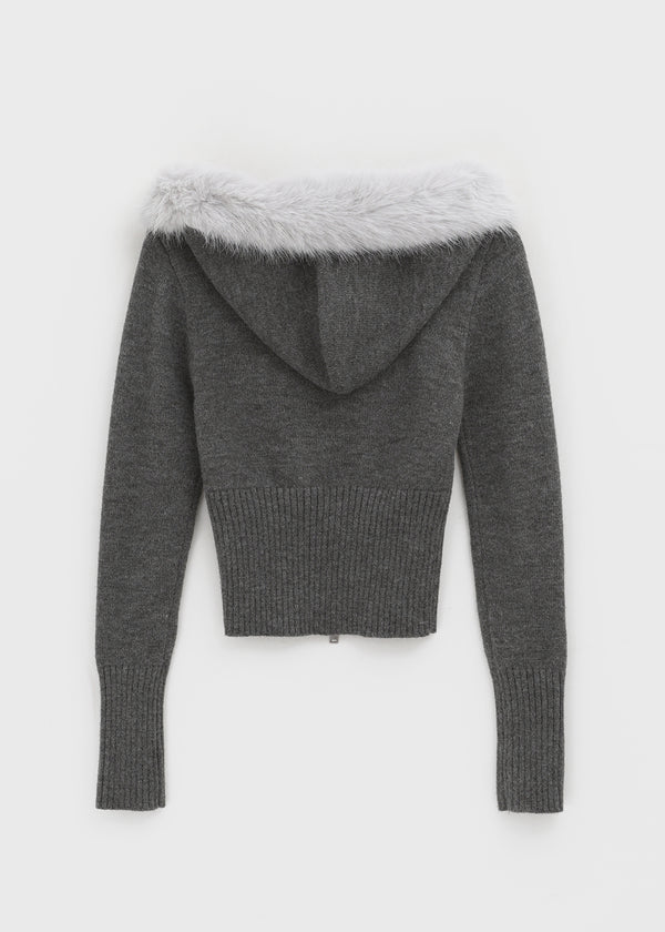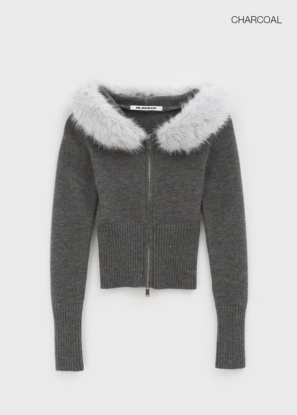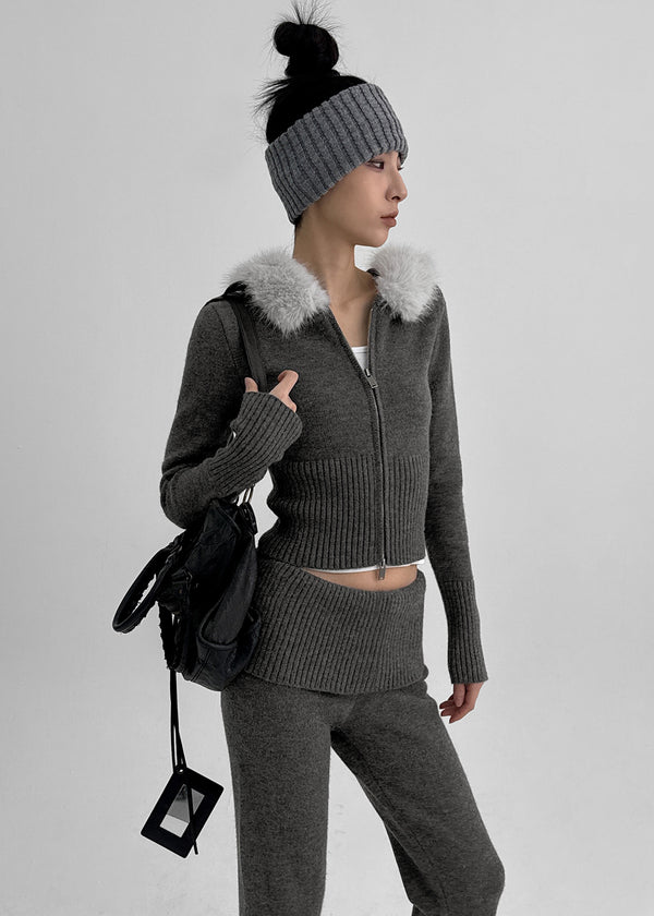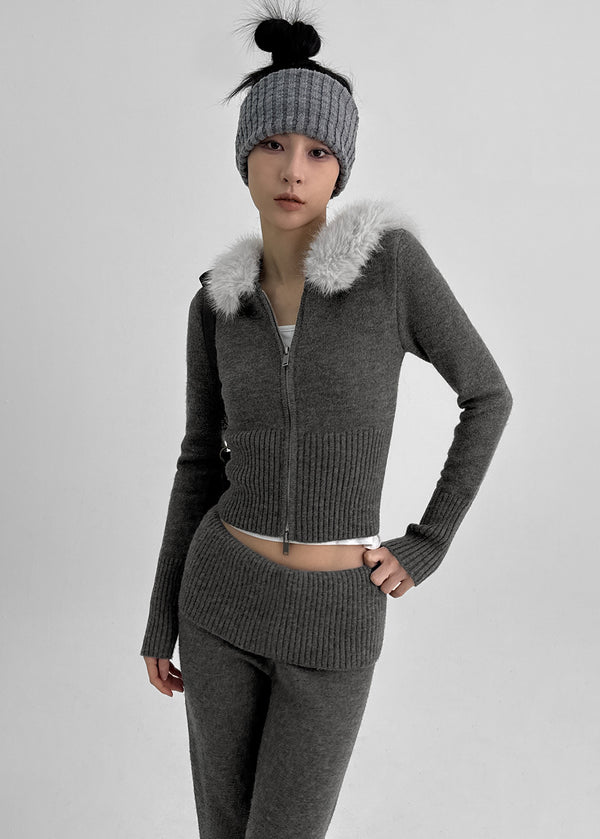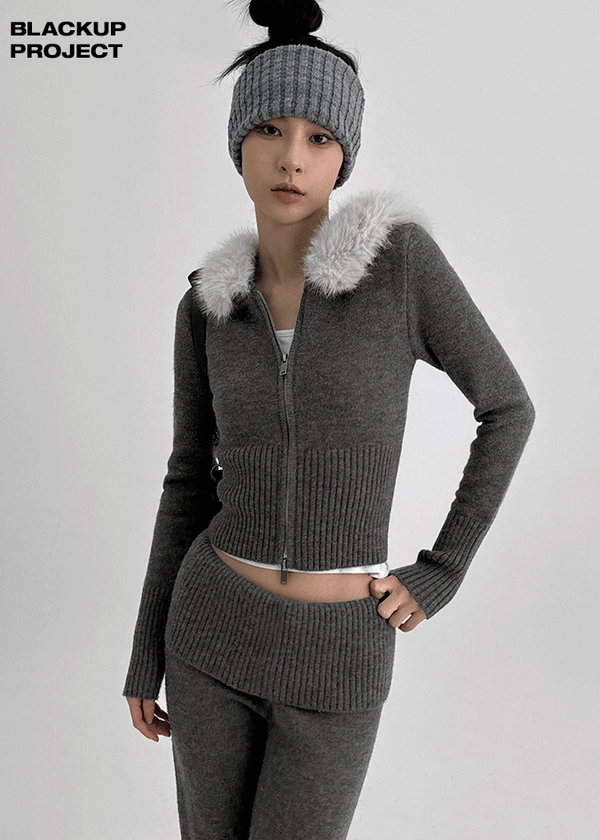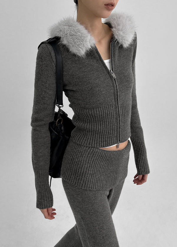 [MADE] Eriki Fur Trimming Knit Zip-up (Set Available)