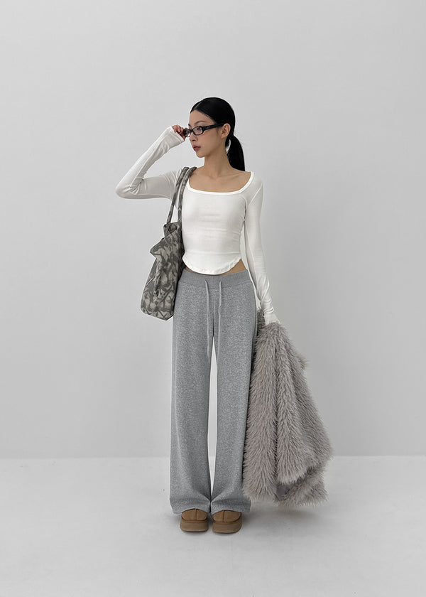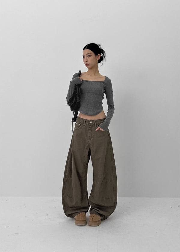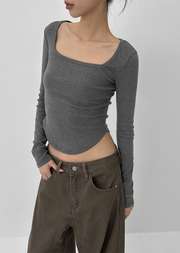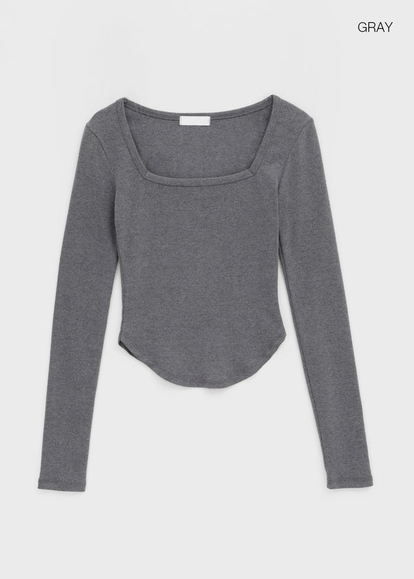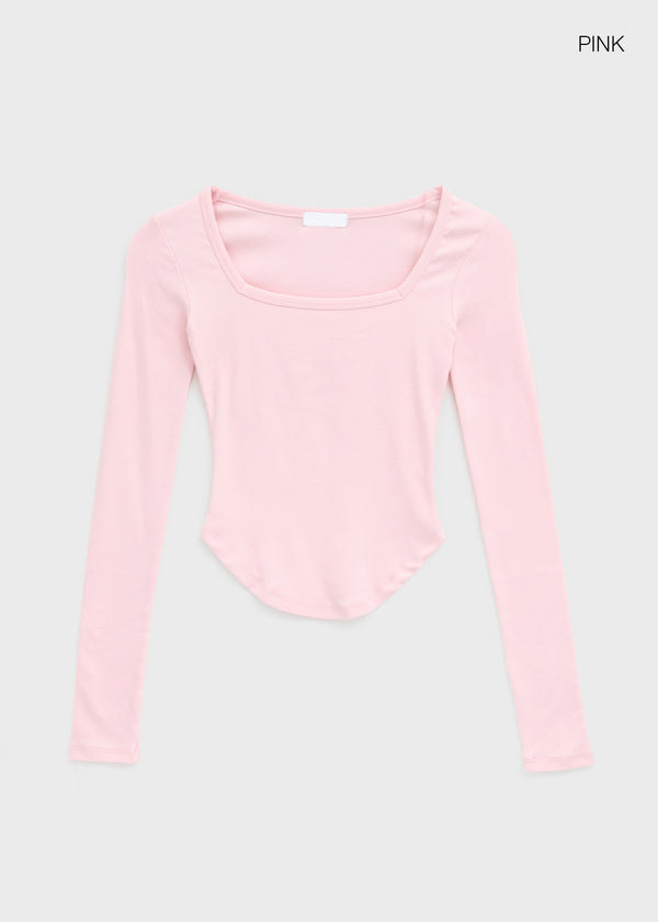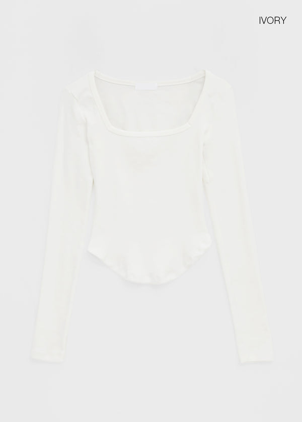 Podumb Rounding Square Neck Long Sleeve T-shirt