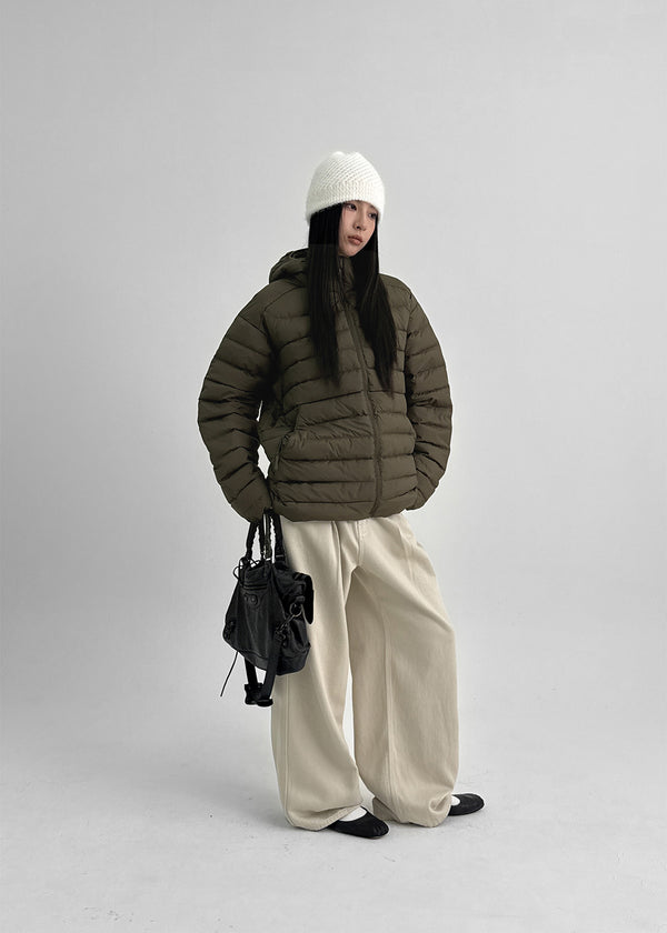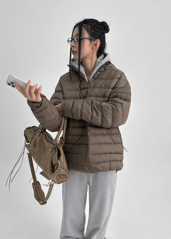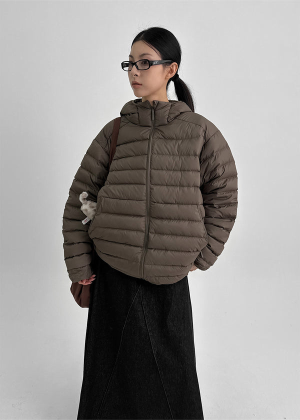 (UNISEX) Lamtine Oversized Duck Down Hooded Lightweight Puffer