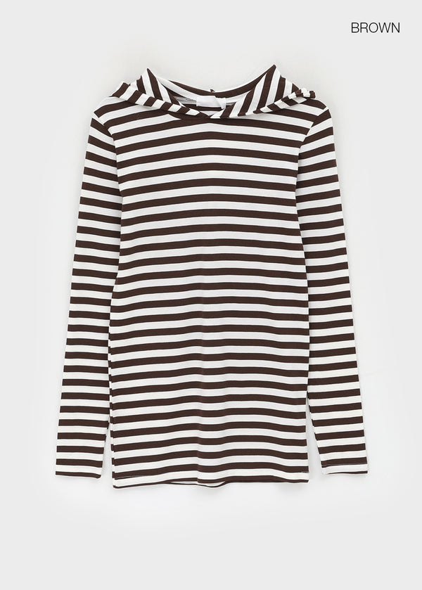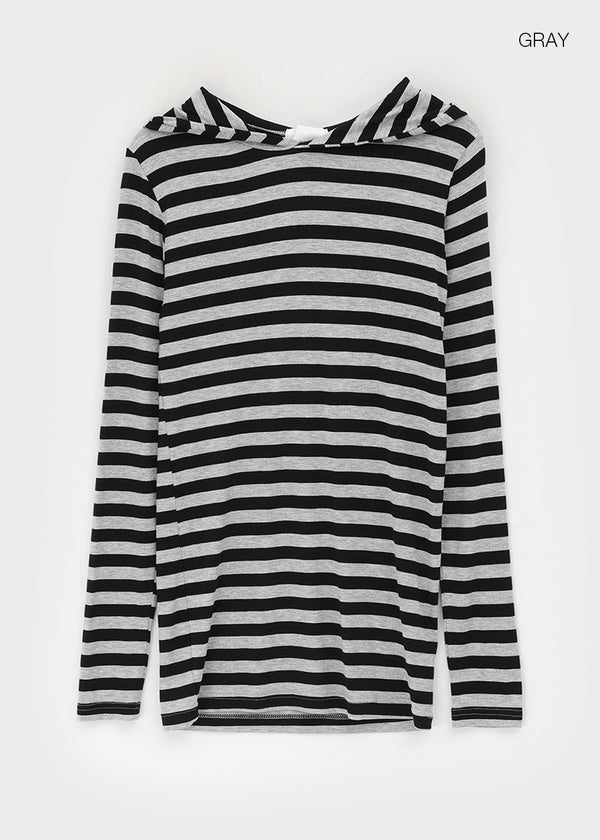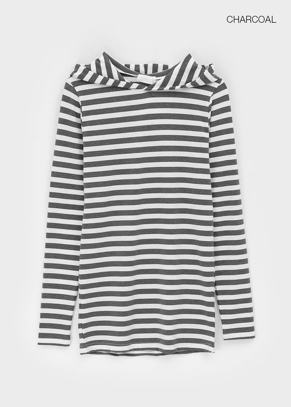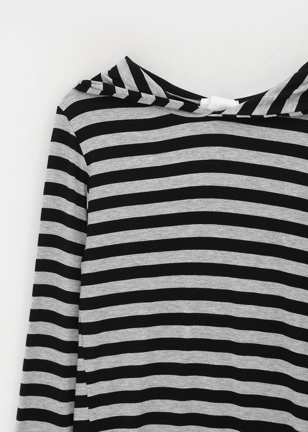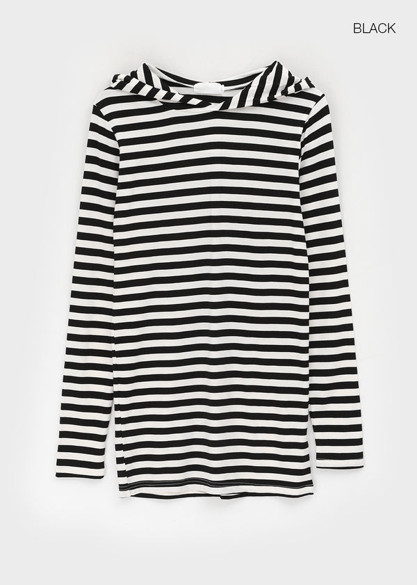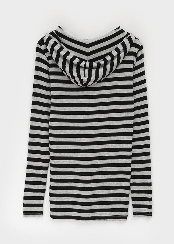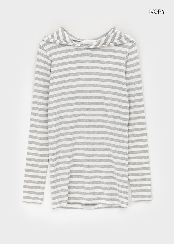 Diyan Stripe Long Hooded Long Sleeve T-shirt