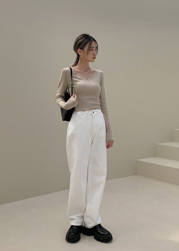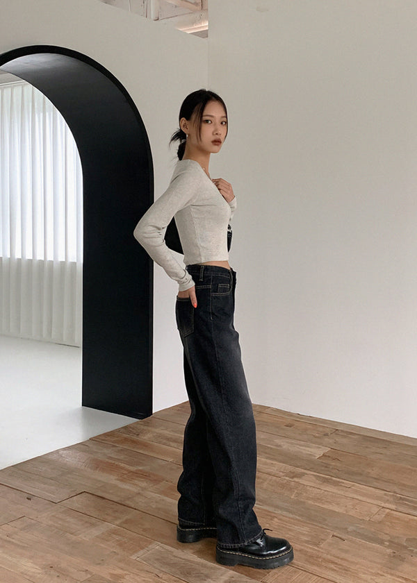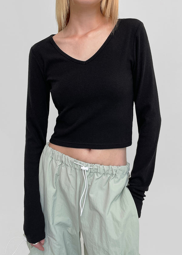 [MADE] V-Neck Extended Sleeve Cropped T-Shirt