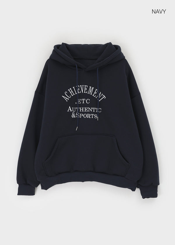 Ritan Double-Sided Fleece Lettering Embroidered Hoodie