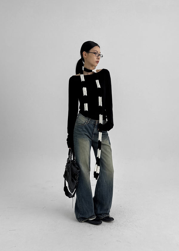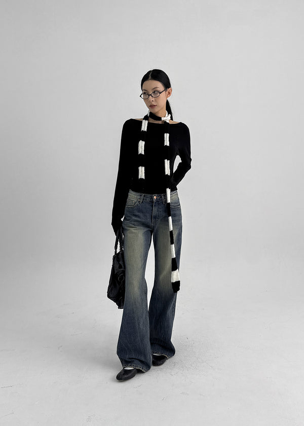 Calf Vintage Washed Bootcut Denim Pants