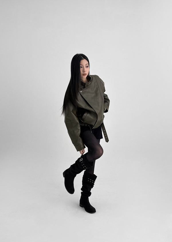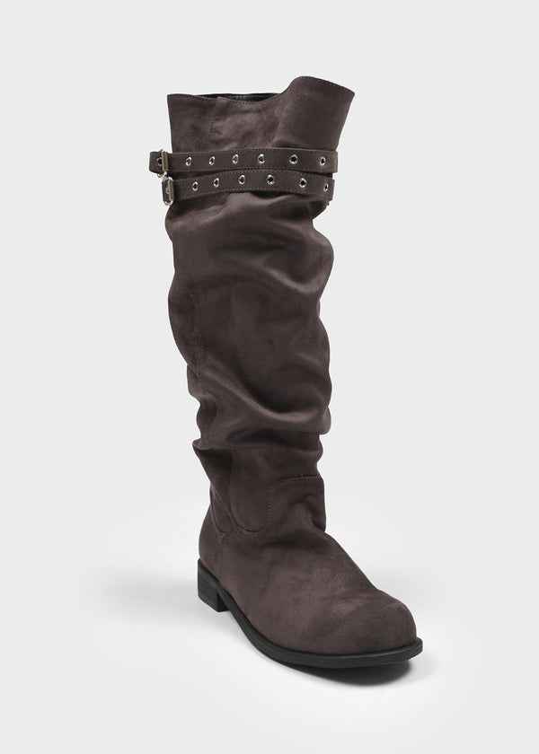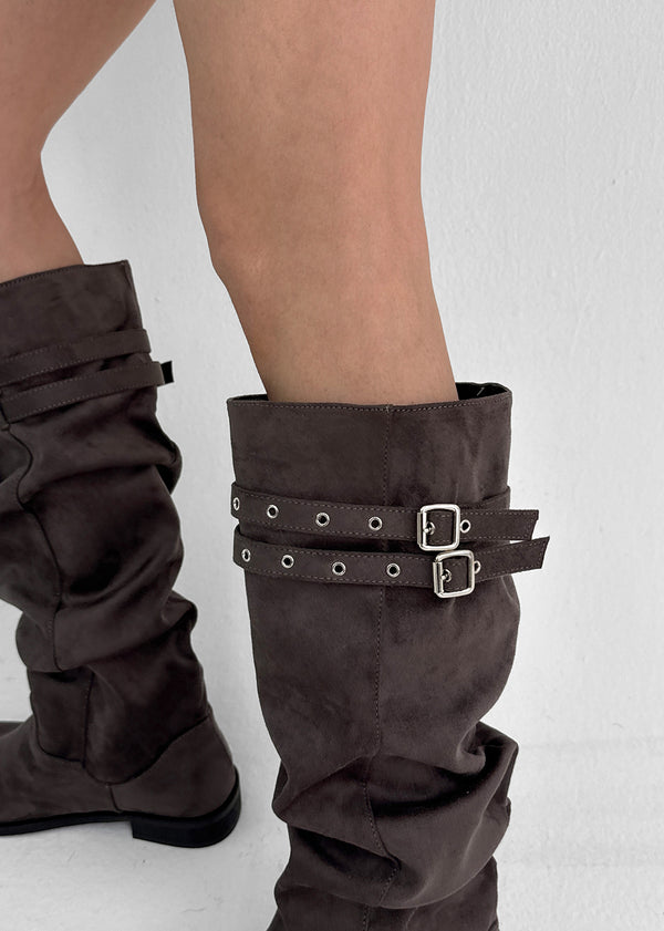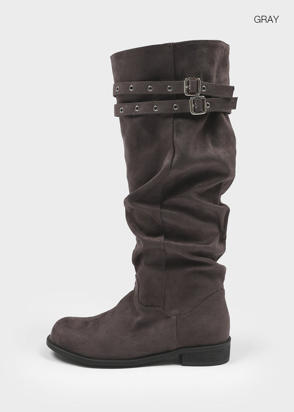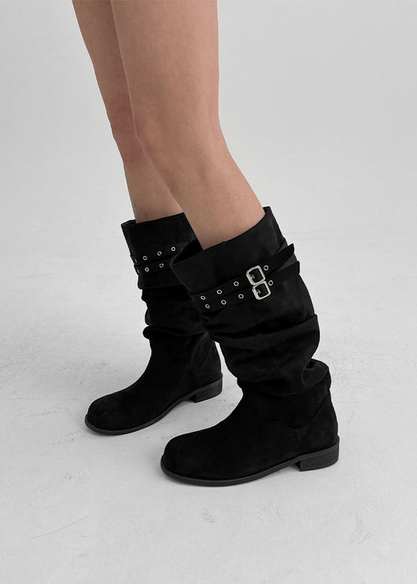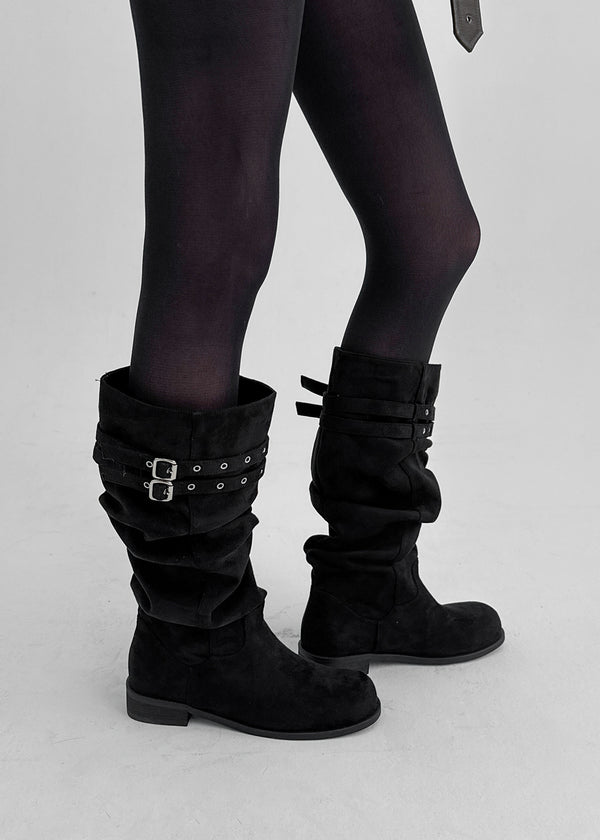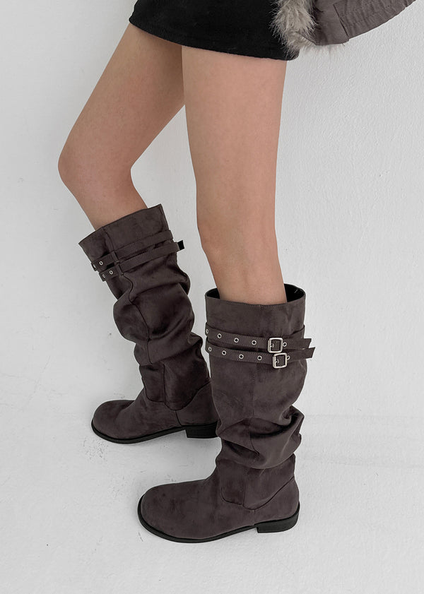 Home Ten Suede Belt Wrinkle Long Boots