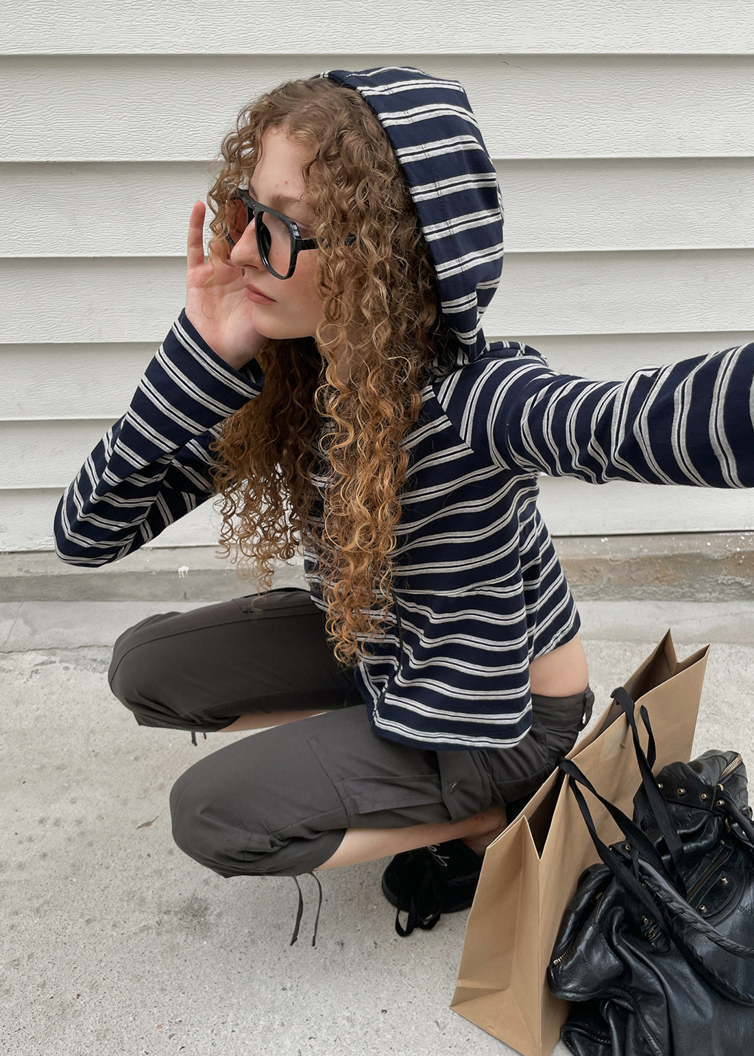 [MADE] Betty Stripe Frill Hooded Zip-Up (Set Available)