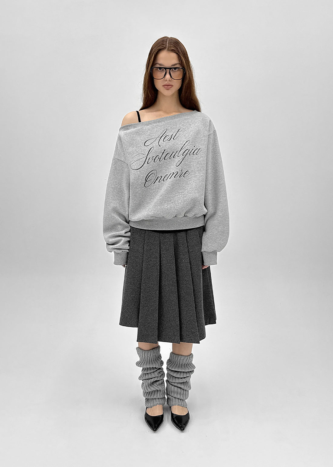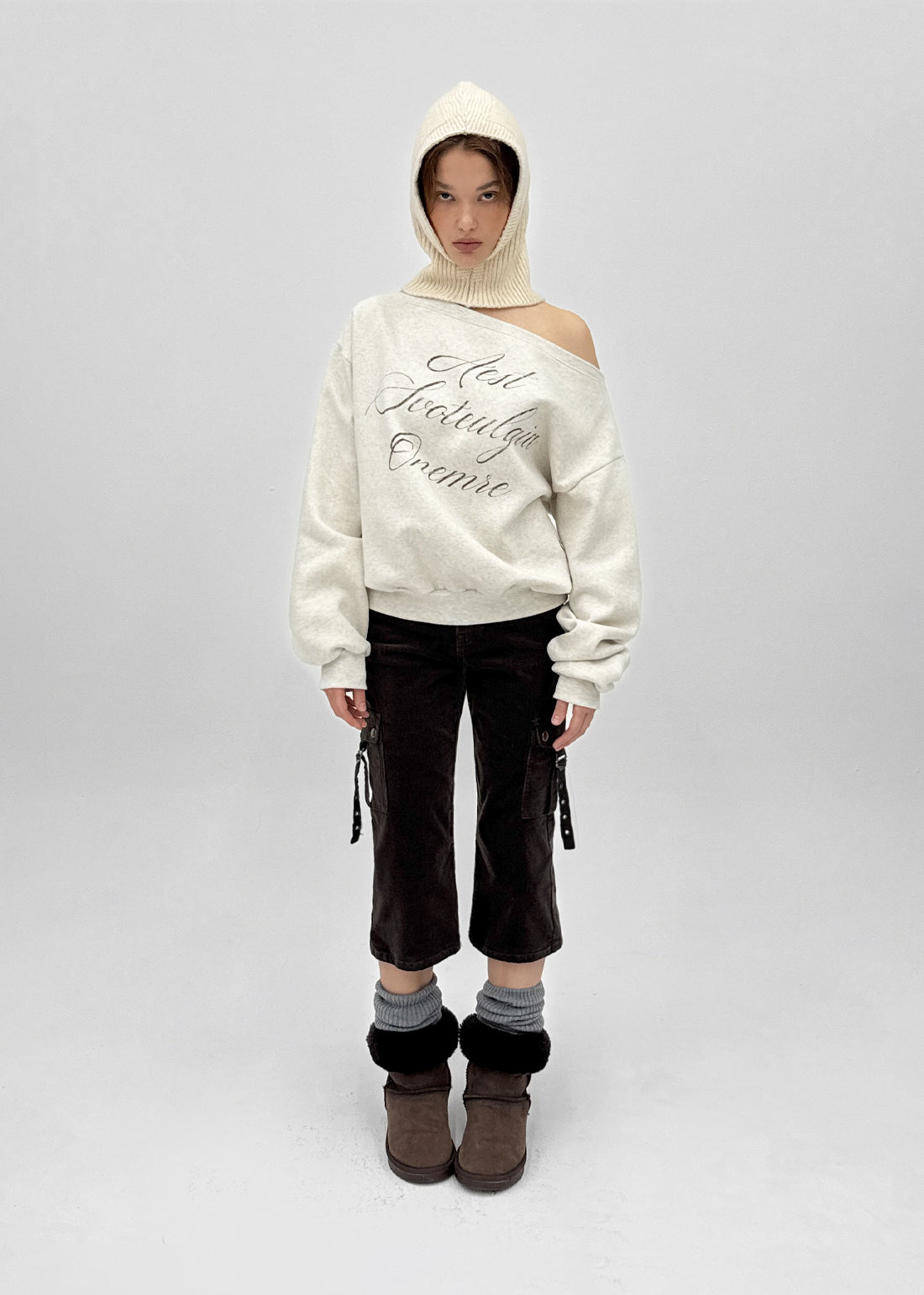 [MADE] Doobin Printed Off-Shoulder Fleece-Lined Sweatshirt