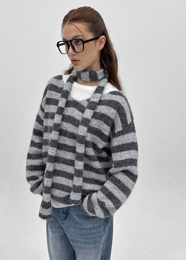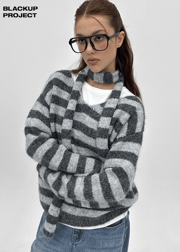 [MADE] Mawill Wool Set - Striped Knit, Muffler