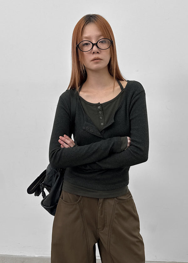 [MADE] Nezuko Button Layered Long Sleeve T-shirt