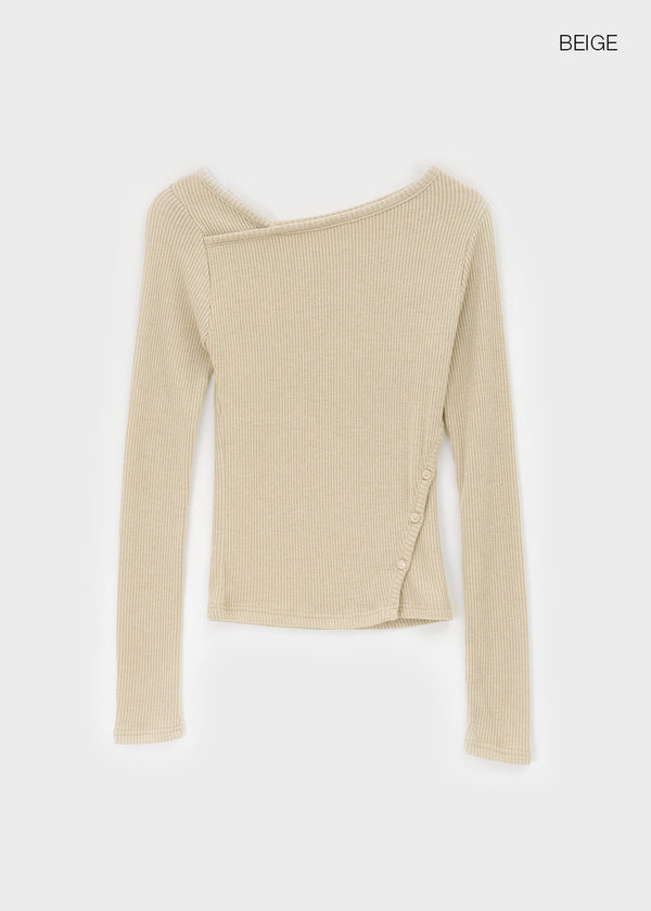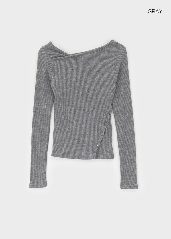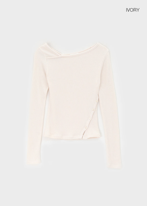 Tspi Slit Button Knit Long Sleeve T-shirt