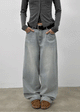 Wide Denim Pants With A Slit Pocket And A Cotton Wash