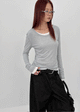 Runong Slit Slim Lettering Long Sleeve T-shirt