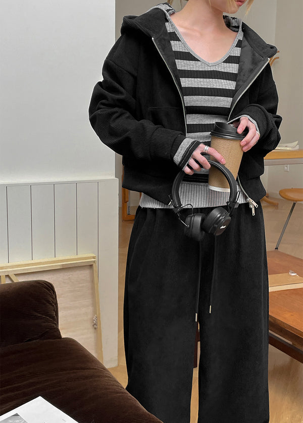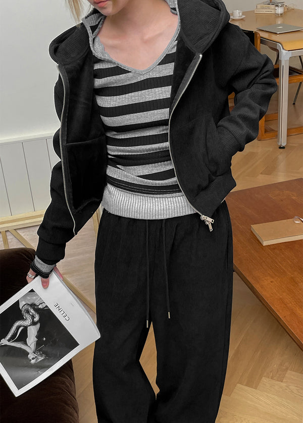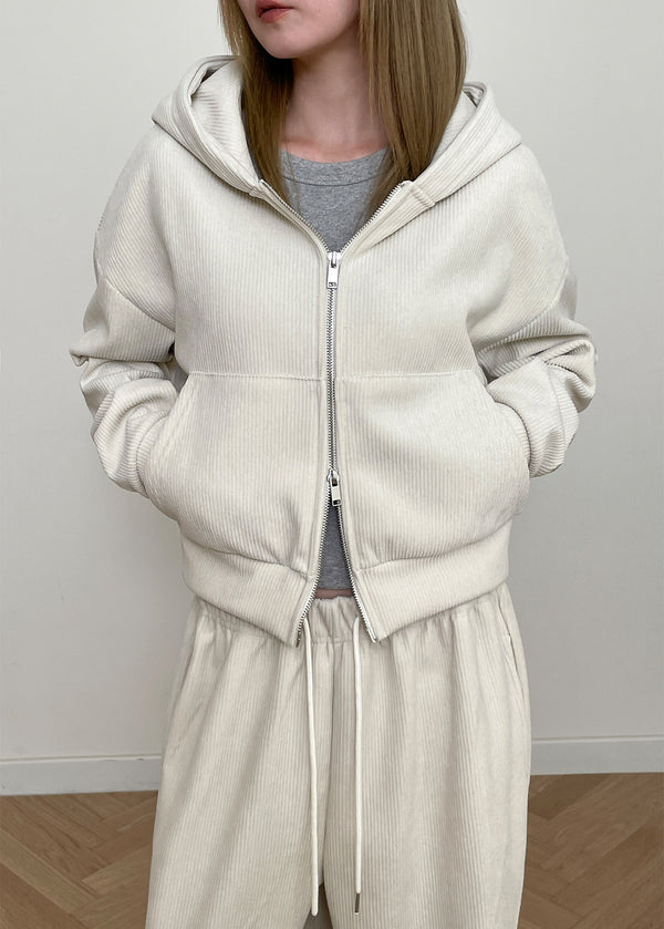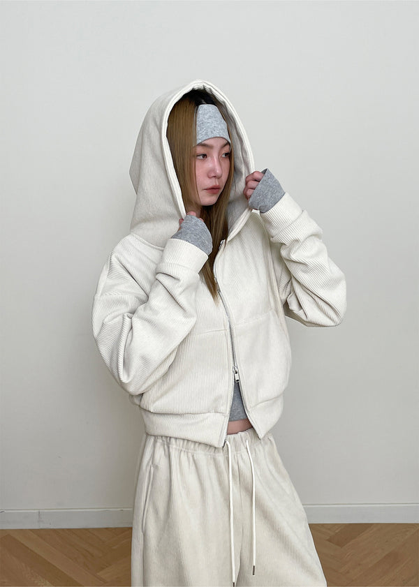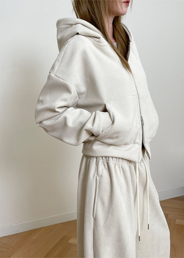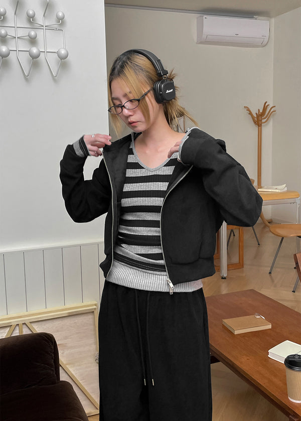 [MADE] DeCore 套裝 - 灰條絨毛絨連帽拉鍊外套